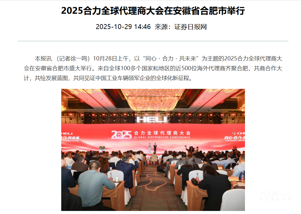 證券日報網丨2025合力全球代理商大會在安徽省合肥市舉行