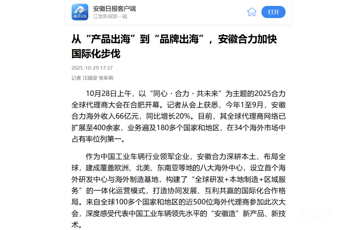 安徽日報客戶端丨從“產品出海”到“品牌出?!?,安徽合力加快國際化步伐